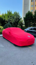 3-layer, 4-way stretch car cover, woven combination of stretch lycra and polyester. Smooth on the outside, soft and scratch-free on the inside to protect your car's paintwork.
