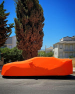 3-layer, 4-way stretch car cover, woven combination of stretch lycra and polyester. Smooth on the outside, soft and scratch-free on the inside to protect your car's paintwork.